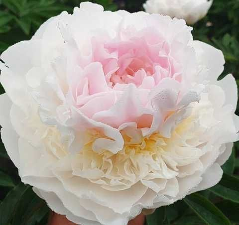 Шикарний сорт трав'янистої повонії . Має великі махрові квіти, до 20 см в діаметрі. В розпуску ніжного кремово-рожевого кольору, в середині видно ряд жовтуватих петалодій, в повному розквіті стає кремово-білою.